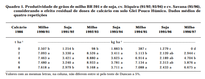 - SciELO Brasil – Efeito residual do calcário na produção de milho e soja em solo Glei Pouco Húmico
